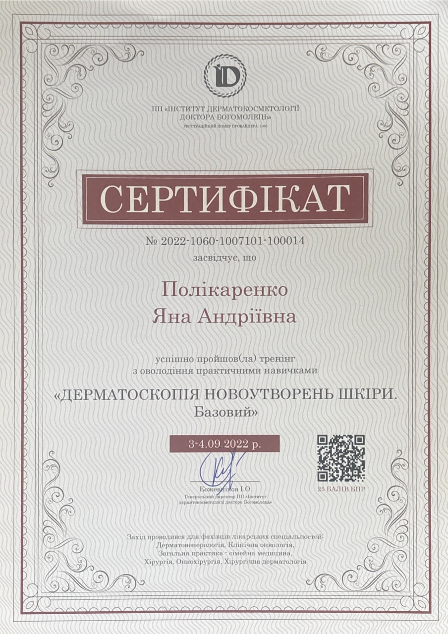- Дерматоскопія новоутворень шкіри - Інститут дерматокосметології доктора Богомолець — 09.2022
