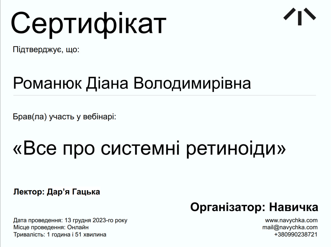 Є діючим членом УАДВ ( Української академії дерматовенерології)